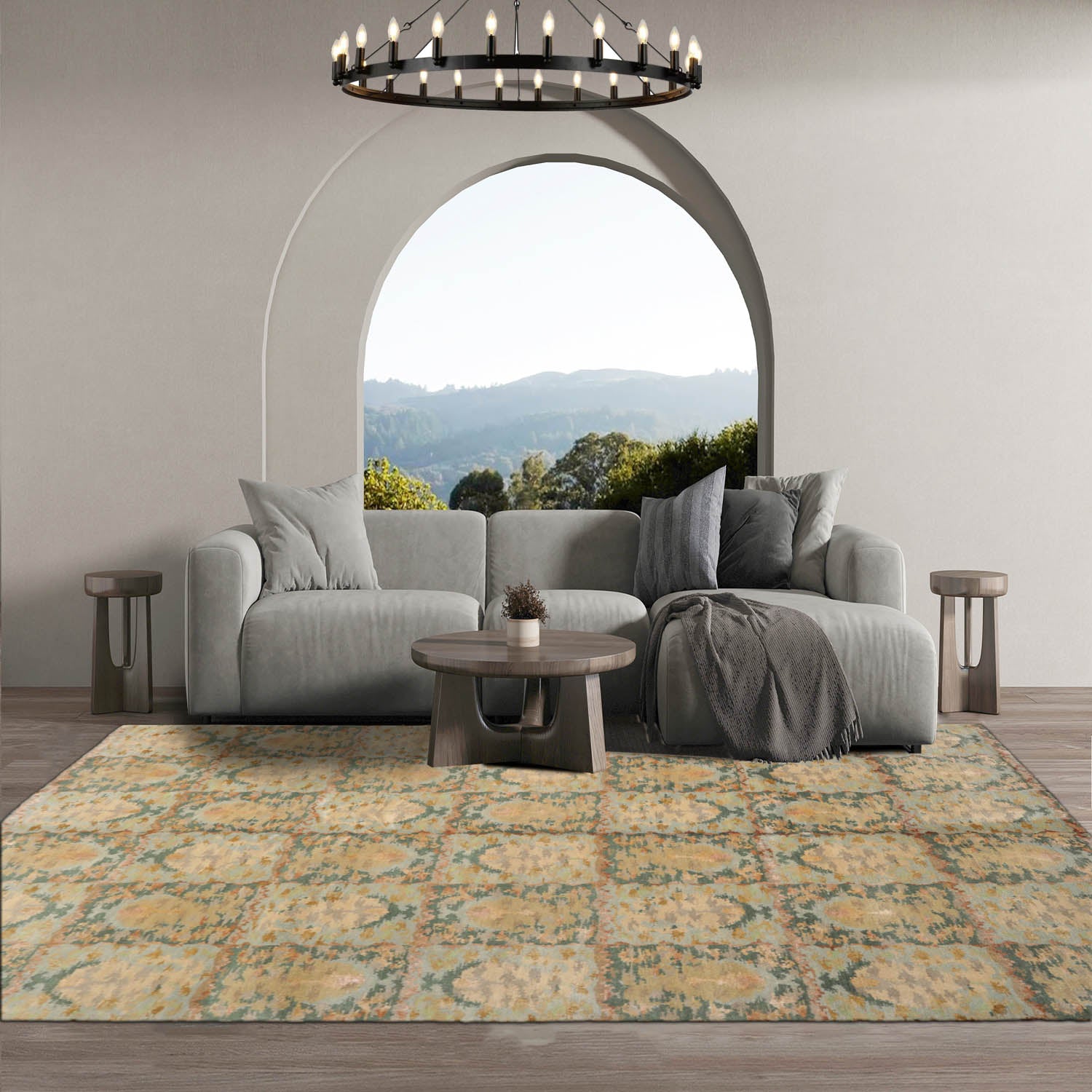 Story Behind the Art: For centuries Tibetans have used rugs for decorative and functional purposes, drawing upon geometric patterns, auspicious symbols, real and mythical animals, and natural imagery to create beautiful, colorful designs. But it was only after 1959 with the Chinese invasion of Tibet and the growth of Tibetan diaspora in Nepal and Tibet that Tibetan rug weaving underwent a crucial commercial revival. In the 1970s, Tibetan rugs rose to prominence and Nepalese artisans, who were drafted in to keep up with the rising demand, became the mainstay of the Tibetan rug weaving traditions. Tibetan rug utilizes a slit-loop technique called the Tibetan knot which makes for a pile that is a wonderful mix of depth, texture and richness. In modern times, designs featured in Tibetan, Nepalese rugs (those woven by Tibetan refugees in Nepal) and Indo-Tibetans (woven in India) range from Westernized adaptations of traditional Tibetan motifs (such as branching floral designs and snow lions) to a large mixture of foreign and modern free-form patterns.