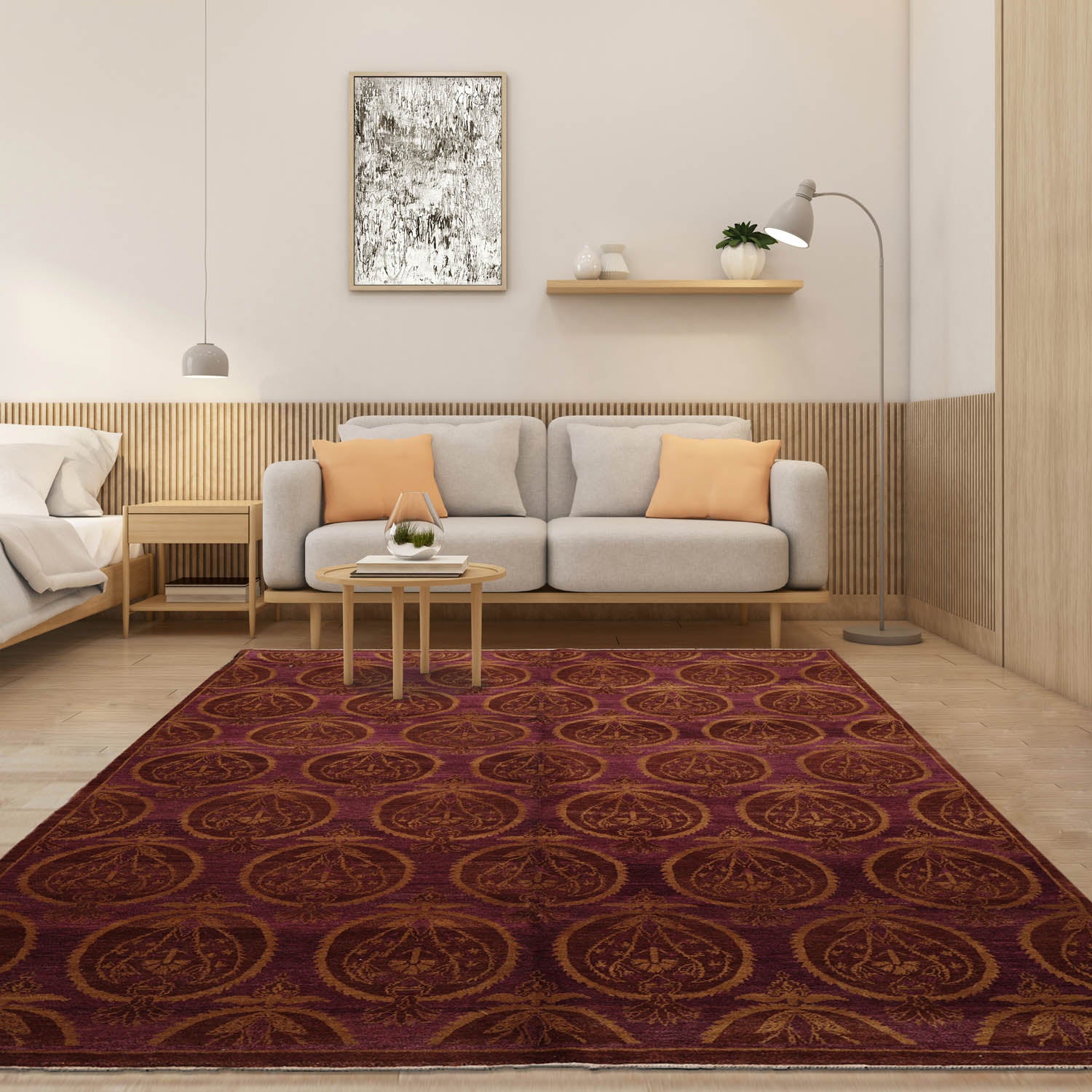Story Behind the Art: For centuries Tibetans have used rugs for decorative and functional purposes, drawing upon geometric patterns, auspicious symbols, real and mythical animals, and natural imagery to create beautiful, colorful designs. But it was only after 1959 with the Chinese invasion of Tibet and the growth of Tibetan diaspora in Nepal and Tibet that Tibetan rug weaving underwent a crucial commercial revival. In the 1970s, Tibetan rugs rose to prominence and Nepalese artisans, who were drafted in to keep up with the rising demand, became the mainstay of the Tibetan rug weaving traditions. Tibetan rug utilizes a slit-loop technique called the Tibetan knot which makes for a pile that is a wonderful mix of depth, texture and richness. In modern times, designs featured in Tibetan, Nepalese rugs (those woven by Tibetan refugees in Nepal) and Indo-Tibetans (woven in India) range from Westernized adaptations of traditional Tibetan motifs (such as branching floral designs and snow lions) to a large mixture of foreign and modern free-form patterns.