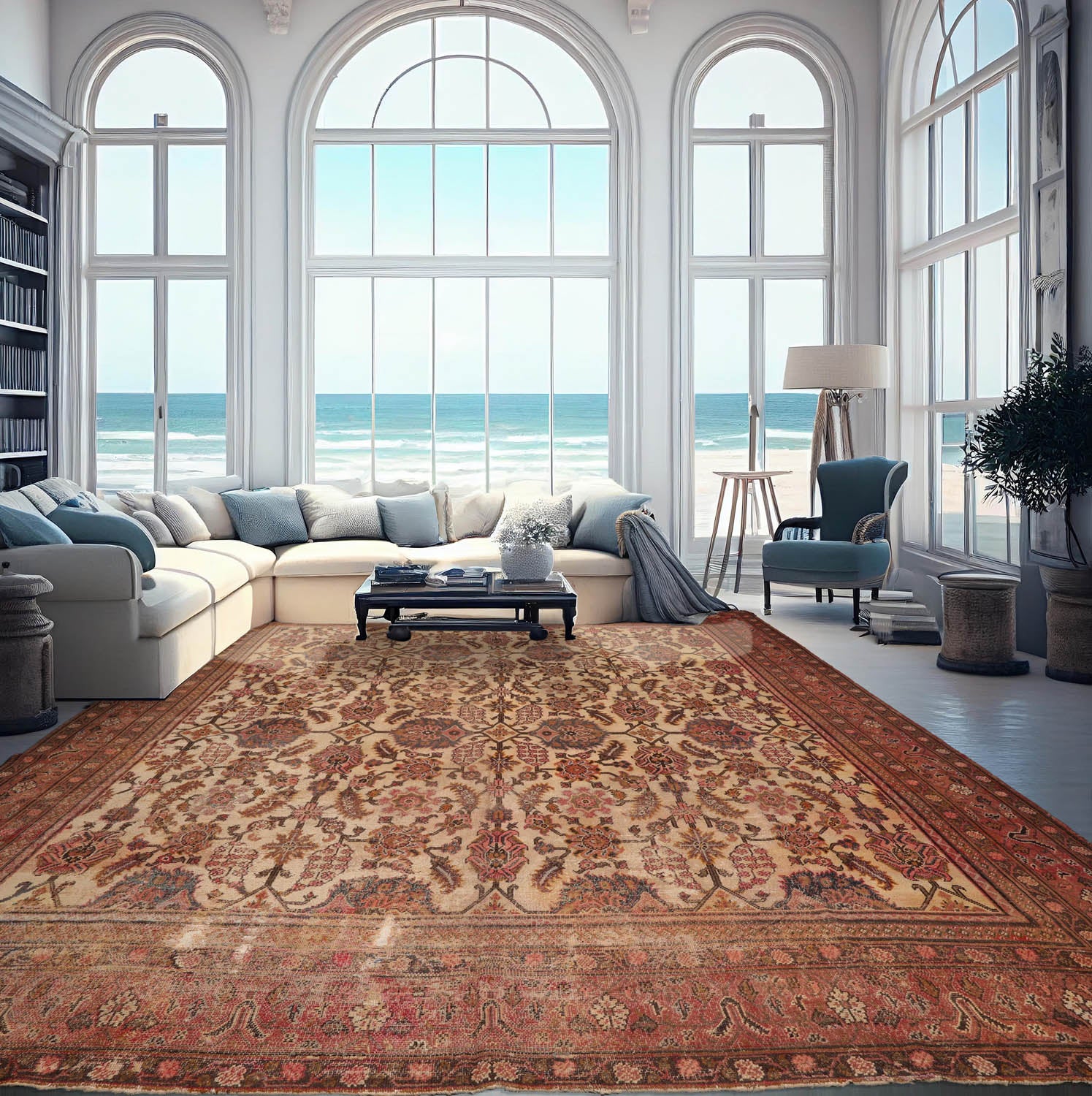 Story Behind the Art: Mahal rugs are produced in the area around the city of Arak, which has a history of rug weaving dating back to the mid-17th Century. The city was originally founded in 1808 as Sultanabad and later in 1930 was renamed to the city of Arak. The design of Mahals tend to be more closely associated to those of Heriz or Serapi due to their magnificent graphic character of the designs. That said, the line work of Mahals is more curvilinear and classical while they do maintain a more casual and tribal feel. Traditional color palettes found on Mahal rugs include subtle neutrals, vibrant reds and clear blues that create a regal Western appearance. Unique color combinations, such as tourmaline pink paired with oxidized green, are also found on Mahal rugs that highlights their tendency to reinvent the traditional.