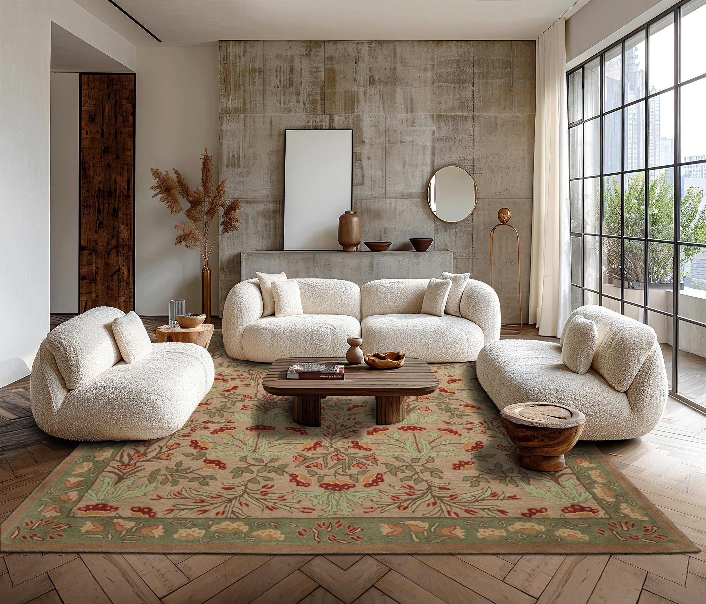 This is a beautiful Beige, Sage, Mint, Grey, Rose, Rust, Multi Color Botanical Floral ACELENE design Hand-Tufted Persian Oriental Area Rug Oriental 100% Wool Rug.