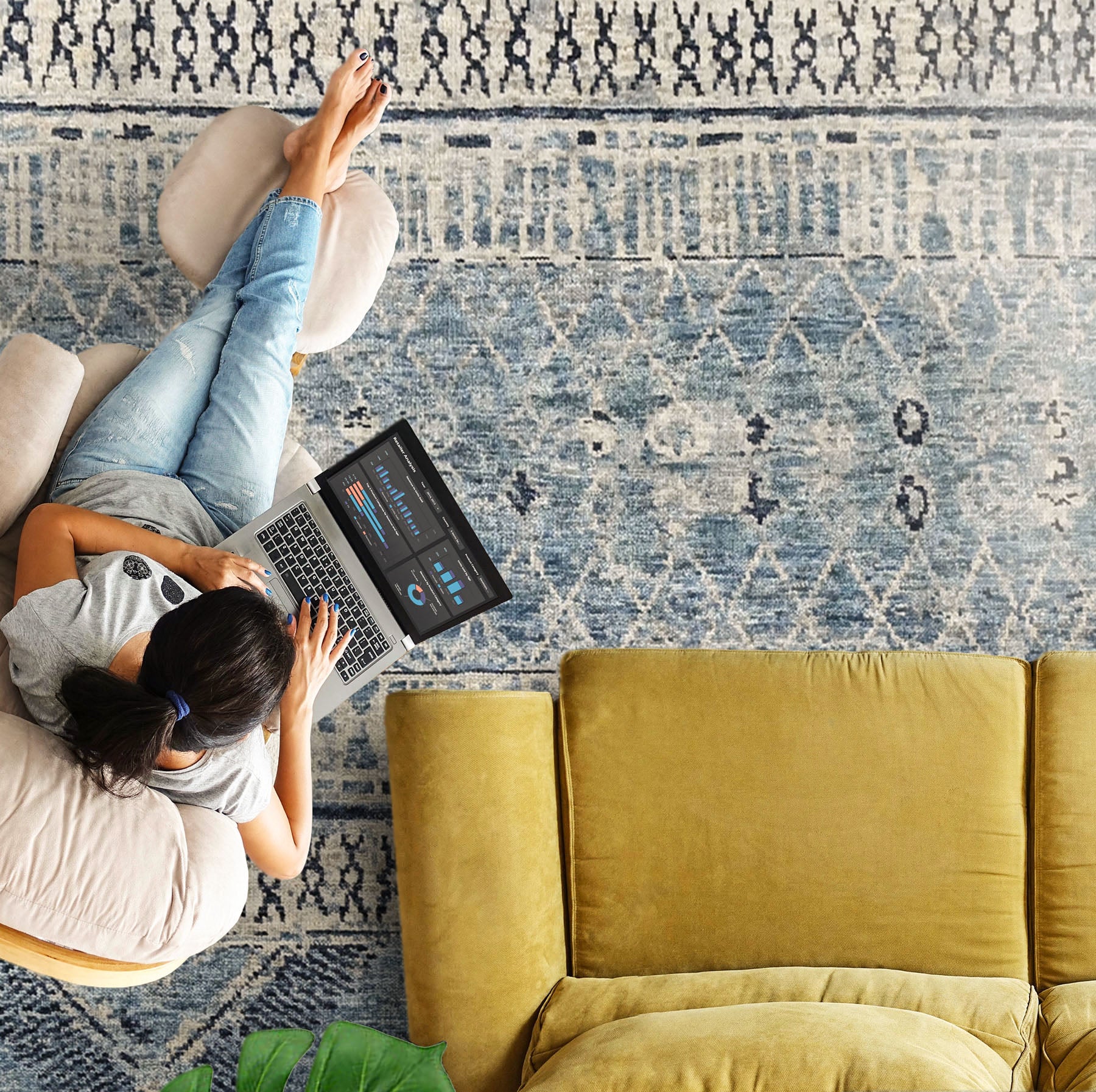 Story Behind the Art: Moroccan rugs trace their origins to the nomadic Berber tribes of Morocco, whose weaving traditions were shaped by life in the cold, rugged Atlas Mountains. Designed initially for practicality, these thick, plush-pile textiles served as sleeping mats and bedding, offering warmth and comfort in harsh climates. Distinct from highly ornate Oriental rugs, Moroccan designs are defined by their use of ancient symbols, abstract forms, and bold geometric patterns that reflect tribal identity, storytelling, and spiritual beliefs. Their raw, expressive aesthetic caught the attention of Western designers in the 1930s, when mid-century modern architects and creatives such as Le Corbusier, Frank Lloyd Wright, and Charles and Ray Eames incorporated Moroccan rugs into minimalist interiors to soften clean lines and add warmth through texture. This pairing of simplicity and depth helped establish Moroccan rugs as enduring design elements in modern spaces. Today, while the tradition remains closely associated with North Africa, Moroccan-style rugs are also skillfully produced in regions such as India and Pakistan, preserving the spirit of the original designs while making them accessible to contemporary homes around the world.