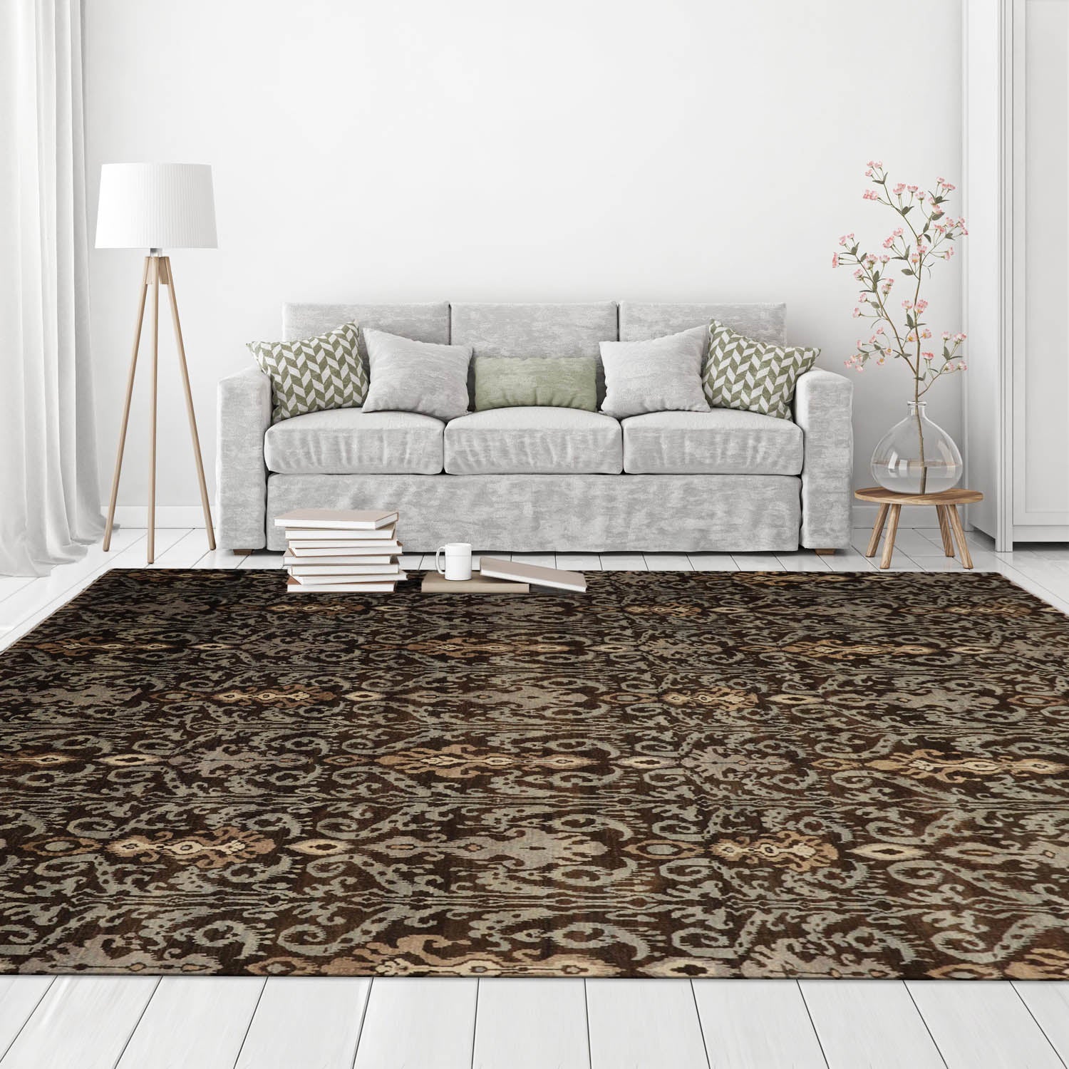 8x10 Hand Knotted Tibetan 100% Wool Transitional Oriental Area Rug Brown,Slate Color