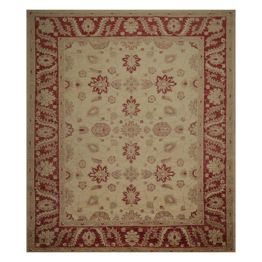 Story Behind the Art : Hand-knotted rugs are Pakistan's second-largest cottage and small industry that began as early as the 11th century under the Mughal rule. The craftsmen have the capacity to produce any type of rug using all the popular motifs of guls, medallions, paisleys (botehs), traceries, and geometric designs in various combinations. While the "stone washes" are used to fade and soften colors, the Peshawar style is characterized by a thinly sheered pile, large print designs, and most predominantly, their antique ivory and sometimes golden tones.