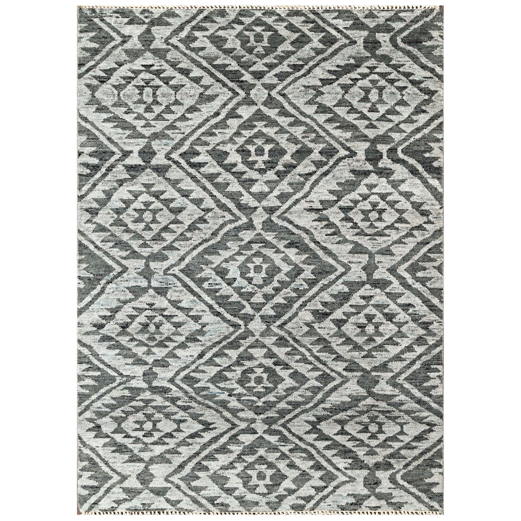 Hand knotted from 100% wool with a cotton foundation, this 4x6 Southwestern rug features a medium pile height and a dark gray palette designed for everyday living. Crafted using traditional hand-knotting techniques, the rug brings together durability, texture, and pattern in a compact format that works hard to define and elevate a space. The rug’s design centers on a repeating diamond geometry which introduces structure and visual rhythm without feeling rigid. Layered tones of dark gray, charcoal, and soft silver move across the surface, creating depth through subtle contrast and natural tonal variation. This interplay of shades allows the rug to visually anchor furniture, soften hard flooring, and add dimension without relying on bold color. The wool pile provides warmth and resilience underfoot, while the cotton base ensures long-term stability and shape retention. Ideal for living rooms, entryways, home offices, or bedside placement, this 4x6 hand knotted wool dark gray Southwestern rug excels at grounding smaller spaces, organizing furniture layouts, and adding a refined layer of texture. It pairs especially well with modern, industrial, and transitional interiors where pattern, material quality, and understated strength play a central role.