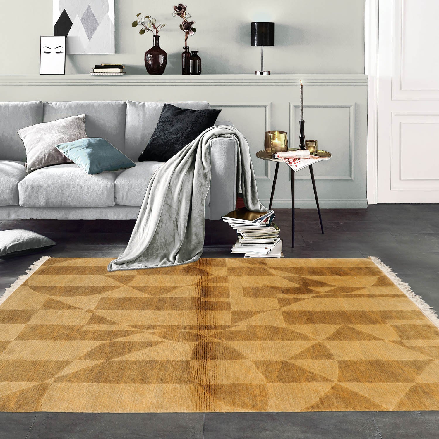 4x6 Gold Hand Knotted Tibetan Contemporary Wool Oriental Area Rug
