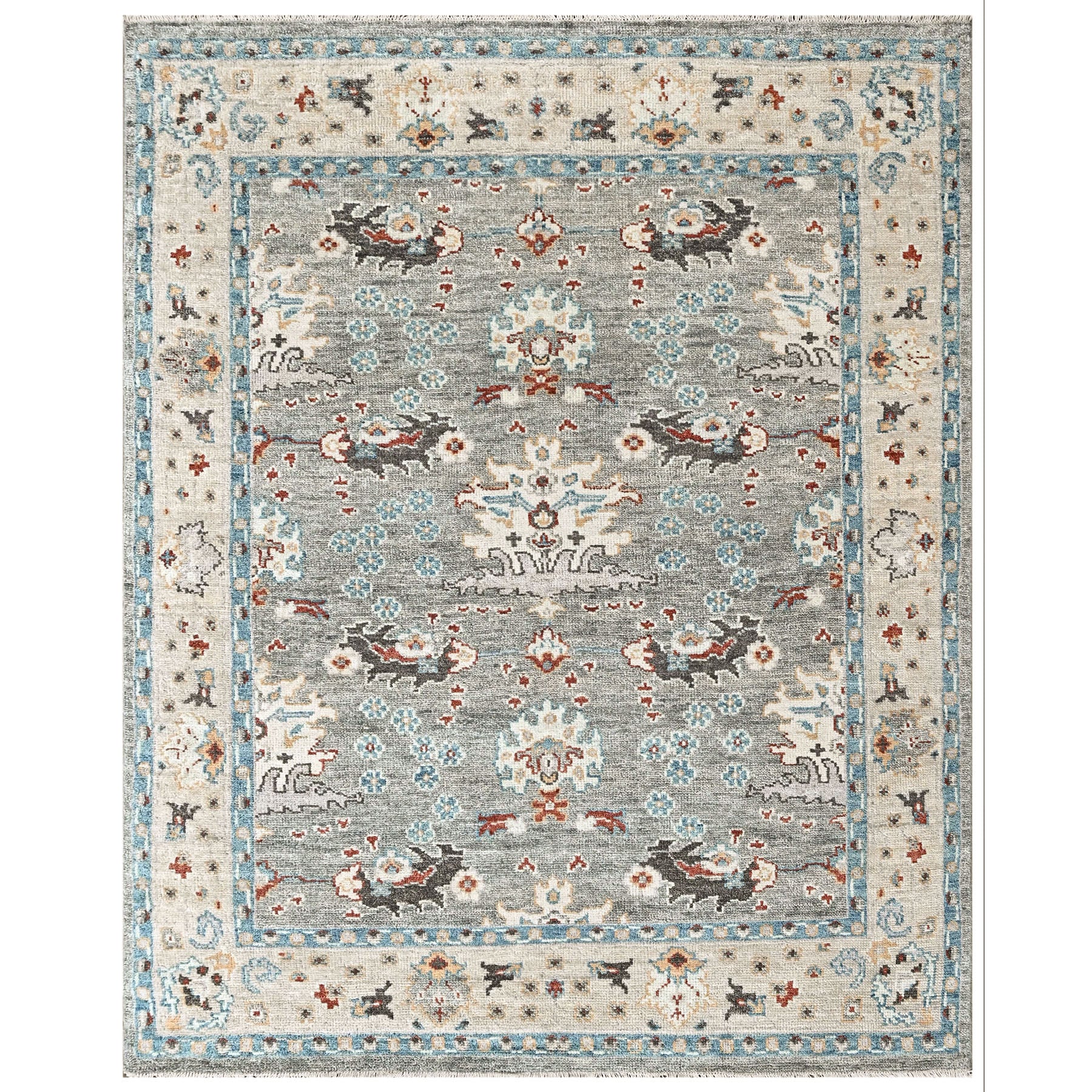 Blending traditional ornament with softly weathered color, this 8x10 hand knotted wool transitional rug carries the presence of a refined heirloom interpreted for contemporary living. Crafted from premium wool on a cotton foundation with a medium pile height, the rug balances historic design language with a relaxed, livable finish. Its composition follows a classic framed layout, with a clearly defined border enclosing a richly detailed interior field. Within this structure, stylized floral medallions, curling vines, and small geometric elements are arranged in an orderly, symmetrical rhythm. Layered shades of gray and warm beige establish the base palette, while controlled accents of gray, beige, and aqua add visual interest without excess. Each hue appears gently softened, contributing to a naturally aged surface that feels cohesive and inviting. The hand-knotted construction enhances motif clarity while introducing subtle texture that highlights the rug’s artisanal quality. Well suited for living rooms, dining areas, or primary bedrooms, this 8x10 hand knotted wool gray transitional rug anchors interiors that blend classic furnishings with modern sensibilities through depth, craftsmanship, and understated elegance.
