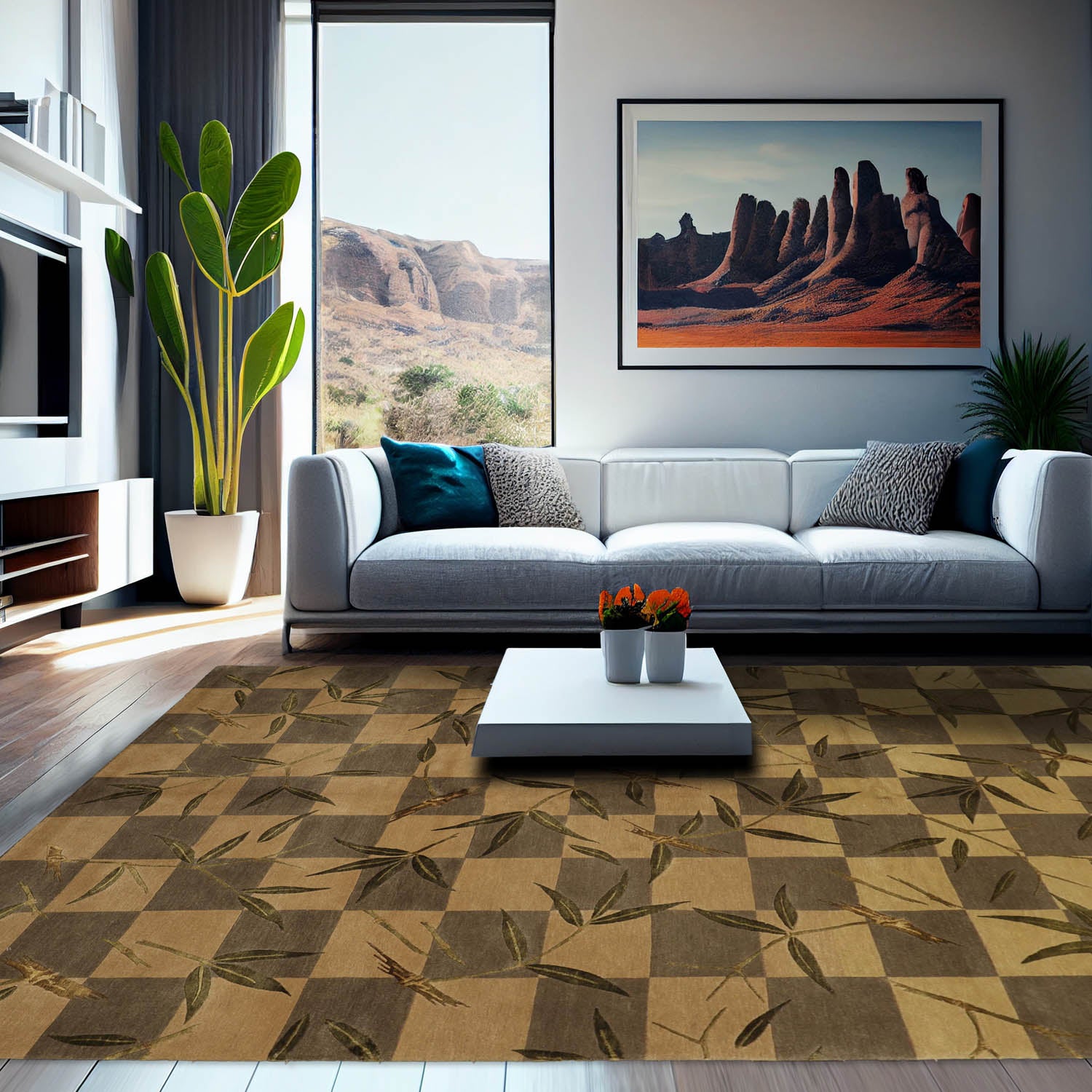 Before you is a beautiful hand knotted Tibetan wool rug from Nepal. The wool not only adds to rug's durability, but also provides dirt repelling quality and thermal insulation. The rug features botanical elements against a checker board background. Its elegant style is easy to decorate with and perfect for living room, dining room, bedroom or anywhere in the residence or office.