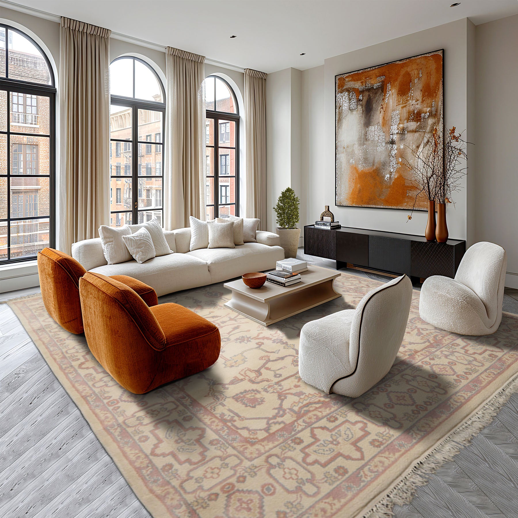 Story Behind the Art: Indo Heriz rugs, woven in India, pay homage to the bold Persian Heriz tradition. These rugs are admired for their monumental floral designs, strong geometry, and distinctive medallion patterns. Their angular motifs provide a visual contrast to the curved elements often seen in other Persian rug types. Alongside medallion-centered layouts, allover designs are also common, showcasing floral or figural ornamentation. Typically woven in high-quality wool, Indo Heriz rugs feature a vibrant and contrasting palette, with striking borders that enhance their dramatic impact. As global rug production shifted, India became a reliable source of Heriz-inspired weavings, ensuring this iconic design style continues with the same dedication to quality and craftsmanship.