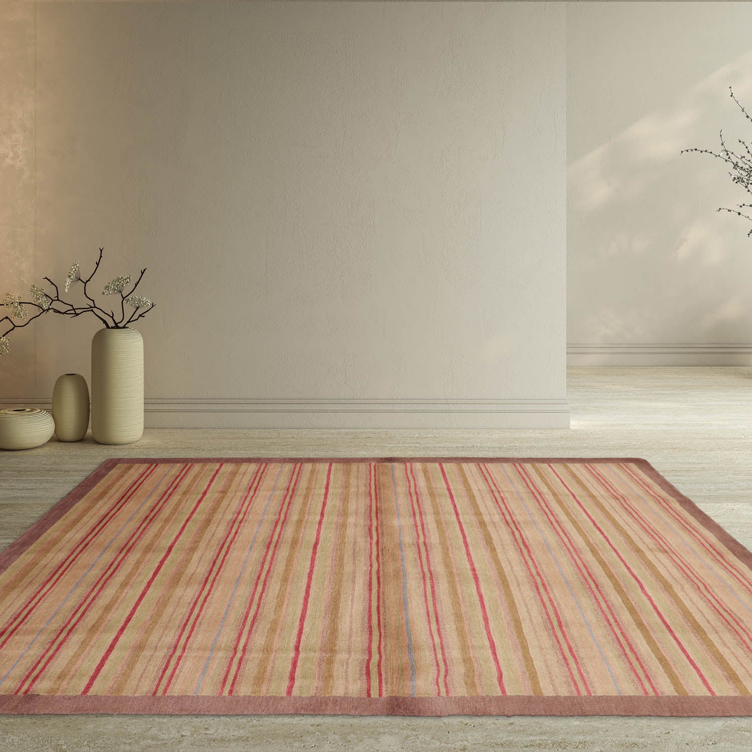 Before you is a beautiful hand knotted Tibetan wool rug from Nepal. The wool not only adds to rug's durability, but also provides dirt repelling quality and thermal insulation. The rug's modern design is ideal to suit contemporary decor needs. Its elegant style is easy to decorate with and perfect for living room, dining room, bedroom or anywhere in the residence or office.
