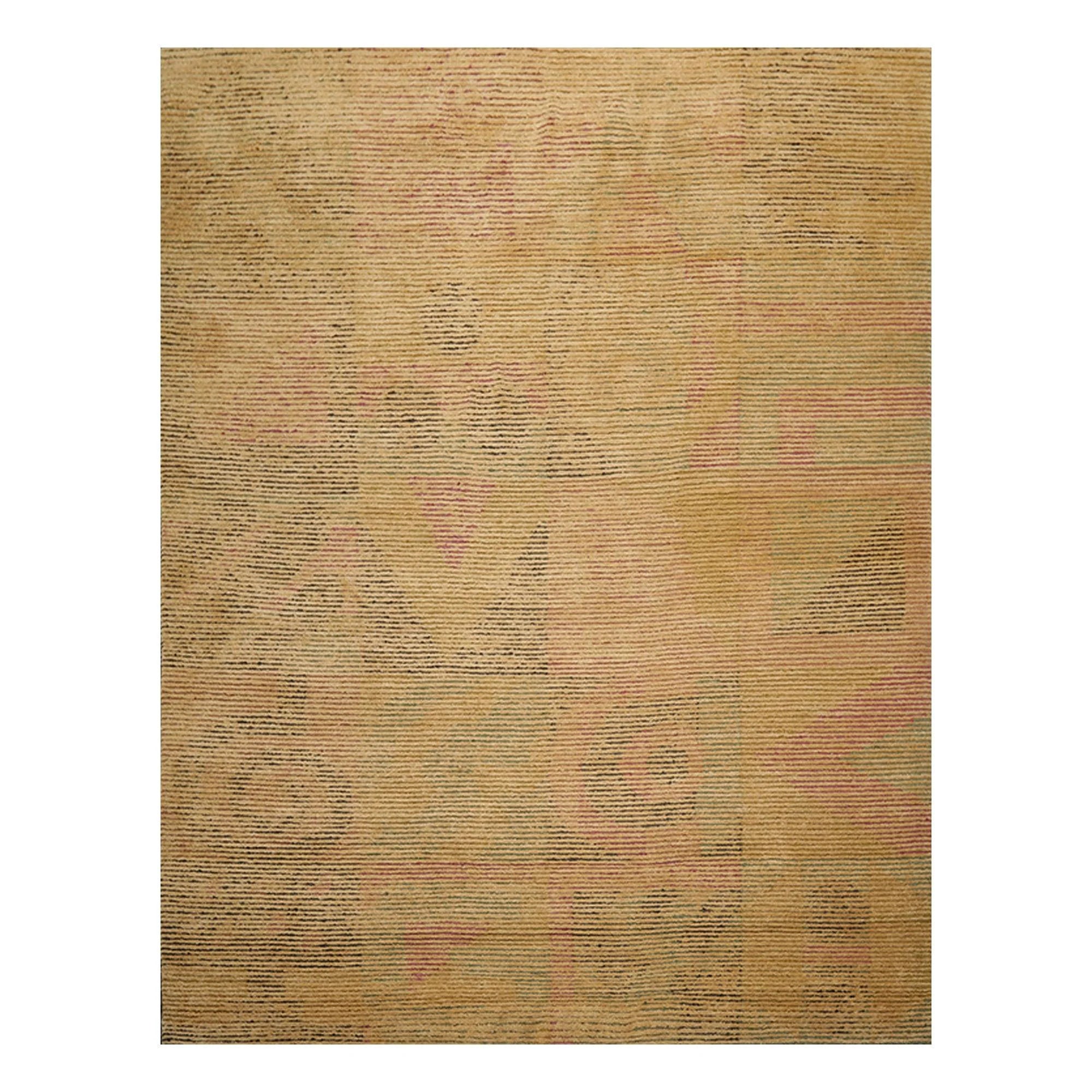This is a beautiful Tan Gold Rust Color Art Deco design Hand Knotted Peekaboo Tibetan Loop N Cut Pile Art Deco Oriental 100% Wool Rug.