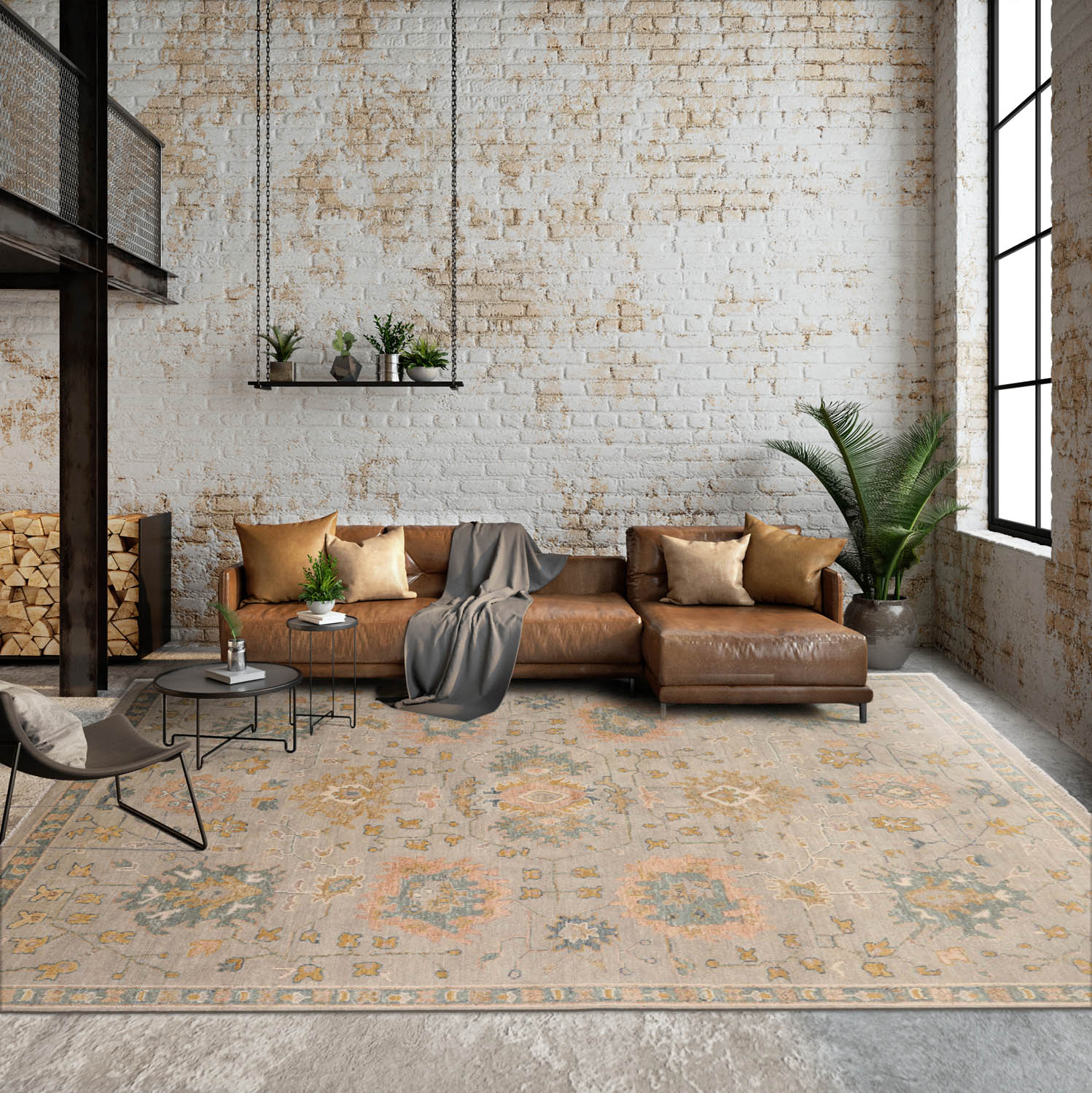 Terramuggus 8x10 Hand Knotted Muted Turkish Oushak 100% Wool Traditional Oriental Area Rug Taupe, Peach Color